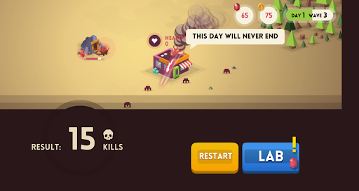 Day of Meat (radiation) is an idle tower defense game. A mysterious comet has just hit the planet, and bloodthirsty monsters have started appearing coincidentally. So arm up and get ready to protect yourself from the waves of scary monsters attacking you. Our hero will take care of the shooting while you manage the defenses. Discover and upgrade new weapons, facilities, projectiles, health regeneration, surprising unique powers, and much more! Pay attention to the fact that the upgrades you apply in the Lab will be permanent. Pro tip: You can use the toggle at the top left to speed up the game! The world needs you, so get ready to research and purge!