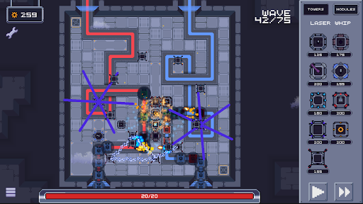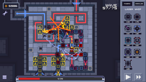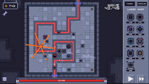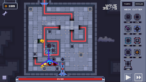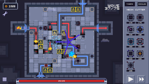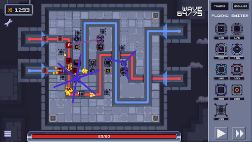 In Defendron, you must strategically place and upgrade a variety of towers to fend off the waves of enemies that move through the city. Each tower has unique abilities and playstyle, which can be altered or enhanced by the modules you mount.