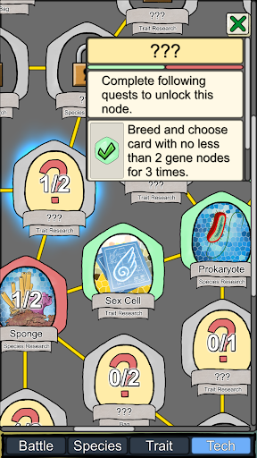 This is an “open world” card battle game, and its theme is about genes. The battle ability of each cards and the gameplay experience are all based on your particular design of each cards’ genes pattern.