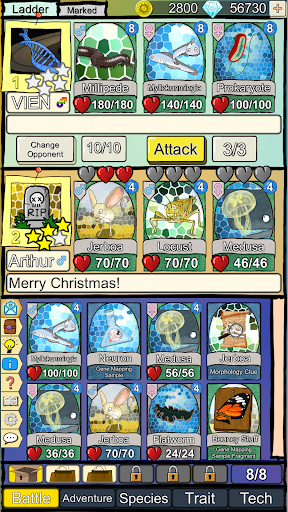 It’s the world’s first GBG (gene-based game) in which all units are bred from its parent units, and inherit their genes. All attributes, skills, and other powers are completely determined by its gene pattern.
