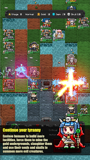 The devil king has been sealed, and the humans are about to destroy the last tribe of the devil. In this moment of crisis I welcome you, the guardian. Now evil will return to the magical continent, and the forces of evil will reign over the world, ready to destroy the last kingdom of man! Continue your tyranny, command slaves to build a variety of facilities, dig the underground gold, abuse humans to obtain their souls, collect heads to summon more evil monsters.