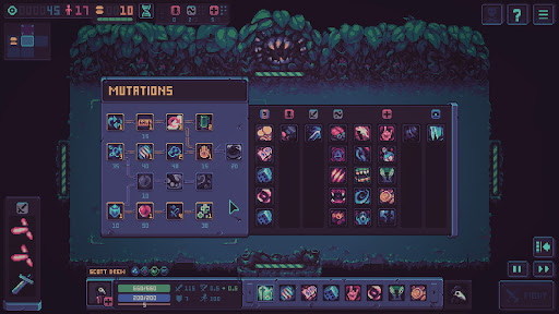Let’s play a game: I’ll give you some puny humans, and you try to help them make it through my labyrinth. No, you won’t be controlling them in battles – they’ll fight automatically! My game is about strategy and praying to RNGesus, not mashing buttons. You can buy items for the humans: swords, crossbows, coffins, stale pretzels. Plus, I’ll let you give them cool mutations! A few Topochlorians in the blood and some Crocodile Skin never hurt anyone. There’s one catch, though: if you die, you have to start over entirely, and the whole world will be generated again from scratch. Yes, my game is a roguelike game. Well, roguelite, if you’re a nerd who loves compartmentalizing us creators into strict genres.