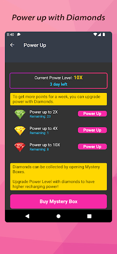 There are different types of diamonds. Higher level diamonds have higher charging power. Those high level diamonds can be upgraded from lower level diamonds. Keep recharging, more prizes you will collect!