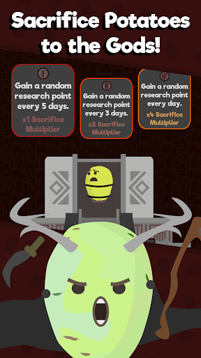 The potatoes follow a very strict faith and will pray to deities that require potato sacrifices daily. Choose your potato god to get your favorite bonuses, and above all else, make sure you have enough sacrifice!