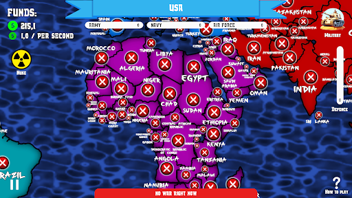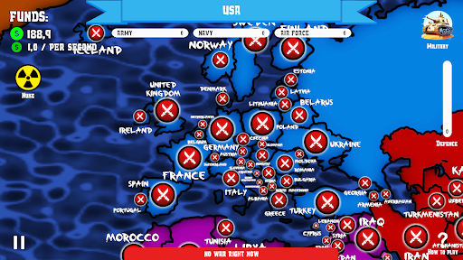 Planet is divided in 5 different regions, your goal is to conquer countries, make their production to work for your army and use it to conquer more territories! Your only way to do it is to upgrade your military in 3 different ways: army, navy and air force. ๐ฅ๐ฅ