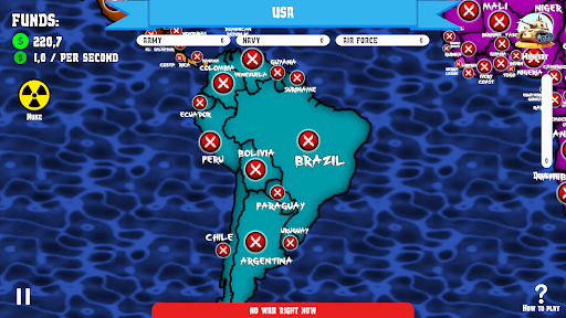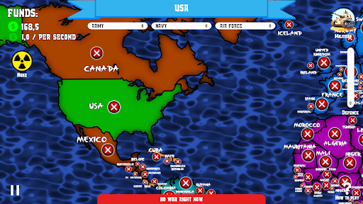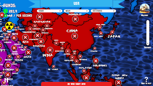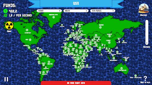 It doesn’t matter if you are an experienced or inexperienced player, Dictators War: World No Peace is quick and easy to understand and play. You will see our game will meet your expectations and give you countless hours of exciting play. Will you survive the battle, conquer countries, and even conquer the world? Show us your skills in fighting and conquering the world. Think strategically and react quickly while conquering countries and territories in this epic strategy game!