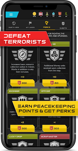 Construction resources will pop up all over the globe, so in the process of their collection you can explore places you’ve never seen before. Why not go hiking or cycling? Explore and adventure to secure valuable resources! Traveling to another country? Don’t forget to check in five times in any spot to establish a new base of operations. Once you’ve collected enough resources you can send your armies to the overseas base in order to advance your influence remotely, even after you’ve left!