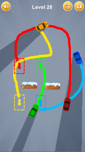 Sometime you have to park 2 or more than 2 cars in their matching color parking lot (P). By following the finger drawn path. if any of the car crashes into the other you loose the game. Draw different paths for different cars towards their parking lots using your finger. This is puzzle and to solve this draw parking puzzle think strategically and wisely so it will be fun and easy to park the cars in the parking lot (P).
