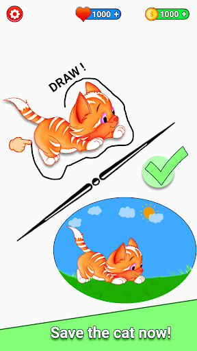 Use your finger to draw one part and outline the shapes of the parts that the drawings need, and then watch the game color & fill in the rest to complete the picture and take you on to the next challenge.