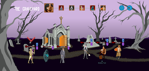 Enjoy zany pixel art and spooky sound effects as you command your dead through battles across classic gothic scenes such as a swamp, a graveyard, and a creepy mansion.