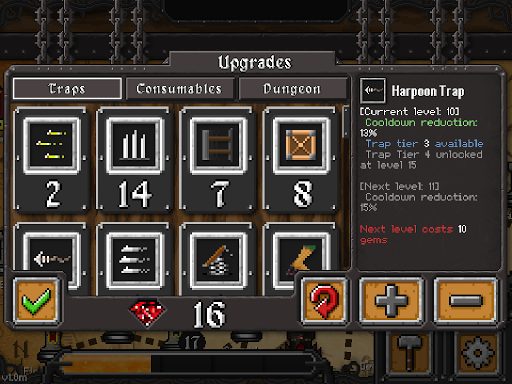As you successfully purify your dungeons throughout the world from the pesky invaders, you will gain access to more powerful traps and devious utilities.