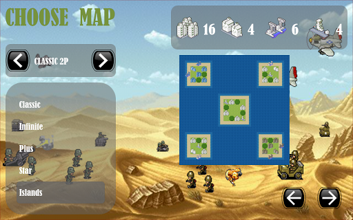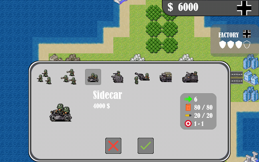 • Ground units : Infantry, Bazooka, Jeep, Truck, Tank, Artillery and Half-Track.