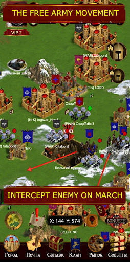 Armies move freely, and it opens wide interesting opportunities for players’ interactions. Large-scale battles, unexpected blow from behind, tracking enemy armies are not the things than you can do by going from castle to castle only.