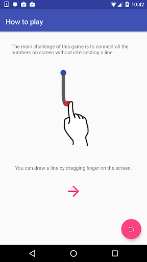 The user starts at a red ball and a number is automatically generated highlighted in green which user needs to connect dragging line from red ball to new number. Then new numbers are generated which user connects without intersecting lines. Once all numbers are connected user wins the game.