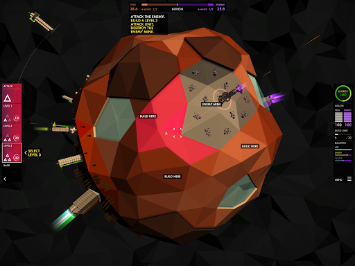You are escaping a decaying solar system. You must visit each planet, mine enough element, and defeat the enemy to progress to the outer planets and beyond. Generate energy, mine element, build attack and defense units, and destroy the enemy while maintaining a balance between earth, air and water.