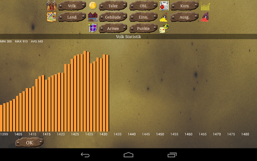 Trade skillfully to be promoted to an Emperor. Pay careful attention to the mood of your people and to your enemies!