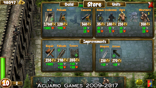 Develop your army by upgrading the defensive wall and battle units.