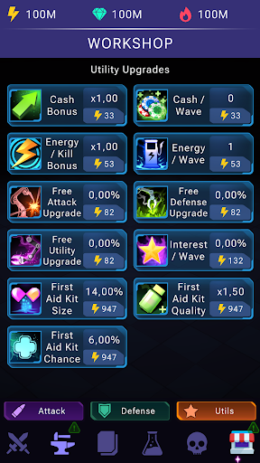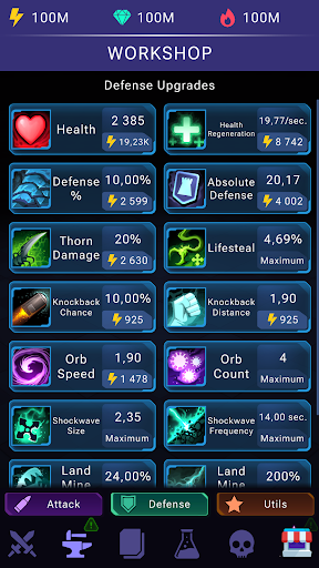 To make you feel like a real strategist, each new game in Epic Rush – Idle Tower Defense is unique. Use your logic and strategy thinking to get the best from a flexible game-build customization system. After every elimination, you get money for which you can spend to increase one of the characteristics. Choose from over 20 stats in 3 different categories. If you want to deal more damage, upgrade your attack. Want regeneration? Then look at defense. Or maybe you need something else? Then support is your choice. Upgrade only the stats you need.