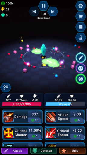 After reaching a certain level, you have the opportunity to get unique upgrades that radically change the gameplay. Get upgrades in the workshop, choose cards with bonuses, buy new magic like lasers, and also you can unlock the doomsday weapon after you reach the 60-th wave