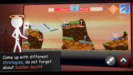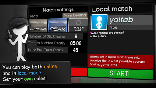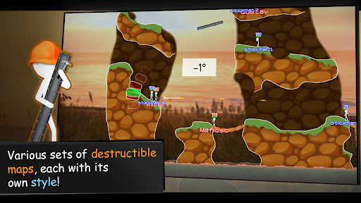 The game has MORE than 25 types of unique weapons, each of which has its own characteristics! For example, a stun grenade explodes after a given player time and blinds the nearest stickman, forcing them to skip their turn, and the pink revolver, although it seems small, is able to blow up a huge part of the map in 1 turn! The game has more than 3 types of maps, the number of which will be replenished in the future. The game can be played in both local and online modes, as well as full-fledged training!