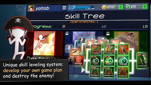 Epic Stickmans Fights is an exciting turn-based strategy game where your main goal is to eliminate the opposing team. Only the strongest will win! Each team starts with a certain number of stickmans, each of which can be named and dressed in its own way!