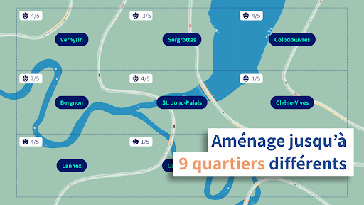 Équilibre – La ville de demain, te permet d’aménager les quartiers d’une version fictive de Genève en multijoueur. Le jeu propose une vision de la ville basée sur des principes de sobriété et de solidarité. Le gameplay consiste à placer des bâtiments dans l’espace limité d’un quartier en faisant de bonnes associations afin d’obtenir le meilleur score possible !