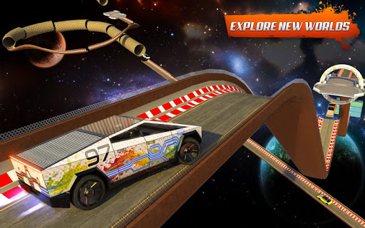 Introducing cyber truck exclusively for the first time in mega ramps car stunt game. Explore 3 huge worlds while performing extreme driving stunts on impossible tracks in outer-space surrounded by planetary system. Do crazy stunt racing on impossible tracks and jump over rooftops of city buildings to earn talented driver title. Unlock mountain range environment and enjoy performing death defying extreme car stunts on vertical mega ramps. Crazy ramp car stunts racing offers unique tricky roads in the air where you can drive your flying car over obstacles to reach the finish line. Unleash the power of electric car and electric truck to do extreme city GT car racing stunts.