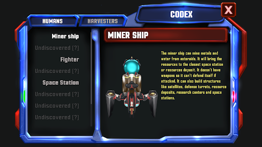 – Resource mining and management: Use miner ships to mine water and metal from asteroids. Miners will bring the resources to the closest Space Station or resource deposits. Use them to build your ships, bases and for upgrades.