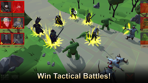 There are 3 factions available in tactics RPG games free offline: Humans, Greenskins, Unholy and neutrals. Factions in campaigns of epic legends has unique magic knight and champion with different abilities and skills for battle. Melee knights, archers, AOE mages, healers, powerful giants and more!