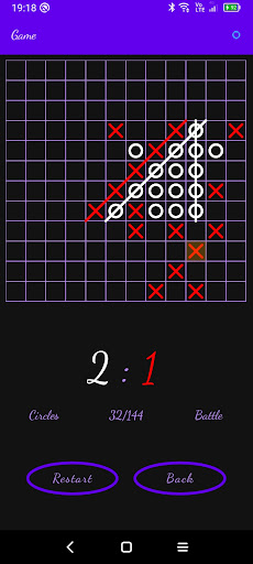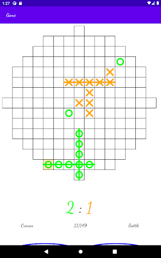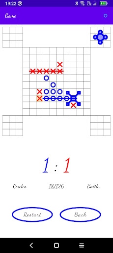 Expansion of classic games such as Tic Tac Toe or Gomoku. It is a game for two where the players take turns marking the squares on the board by either circles or crosses. Play goes on until every square is filled with a symbol and, unlike in Tic Tac Toe, is not ceased after one of the players is able to put 5 of the same symbols in a row.