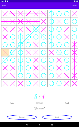 In addition to circles and crosses, one new symbol is introduced as well as completely new entities called towers. There are three different styles of play which a player can choose from which differ in winning conditions. It can be played against computer which is able to play with three different tactics. Or the game can be played against a human – either on the same device or through internet.