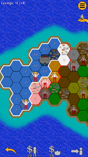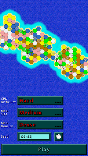 You play on a randomly generated island made of hexagons. Your goal is to conquer all of it. To do so, you attack the enemy with your units while trying to protect your own kingdoms.
