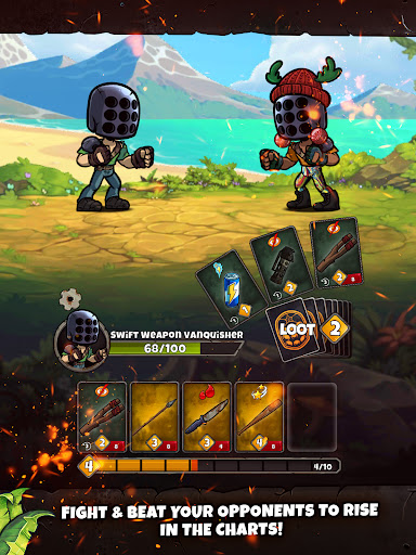 Keep winning to get rewards from the chests and upgrade your weapons/items,