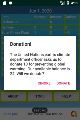 The target for this small game is to reach net-zero carbon emissions in the shortest period to prevent climate change, global warming. Top 5 list will show your best 5 achievements.
