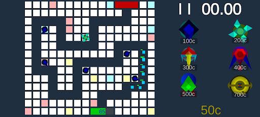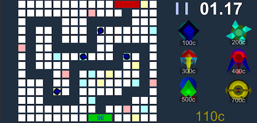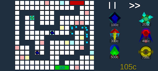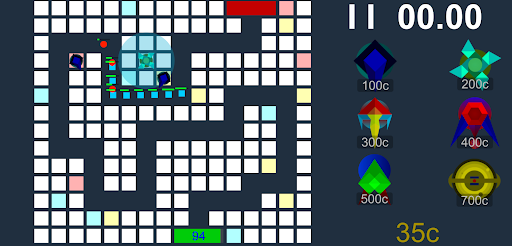 Utilize the colored blocks to buff your turrets speed, damage and range!