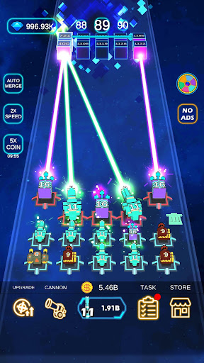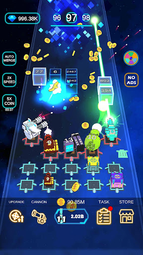 Unlock a variety of cannon in your arsenal. Merge to upgrade the cannon and position tactically to defend against increasingly powerful waves of cubes and deadly bosses.