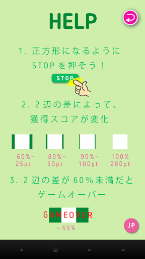 伸び縮みする四角を正方形になったタイミングでSTOPするだけ