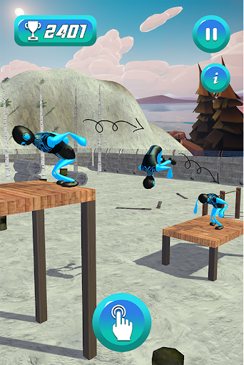 Get ready to fulfill your best parkour dream and perform stunning stunts as a stick flip jump master while playing this tap tap stick jump simulator 2k19. Perform your thrilling stunts and get bonus points to unlock new levels. Do insane jumps and flips down obstacles in this stick idle parkour inspired simulation fun.