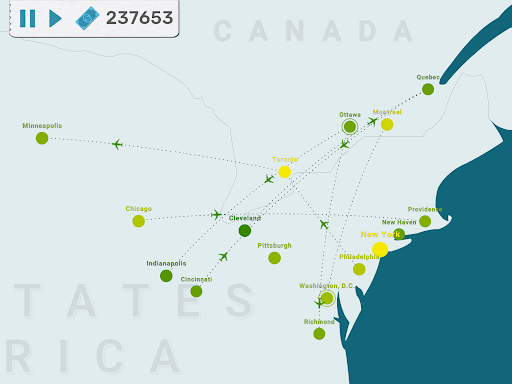 The airport game features an advanced passenger flow system. All the cities are designed according to their real analogs, and the population numbers are true. The more population figures are, the more people would like to fly by your airplanes. Each passenger has their own destination, and they’ll fly with transfers if there are no direct routes.