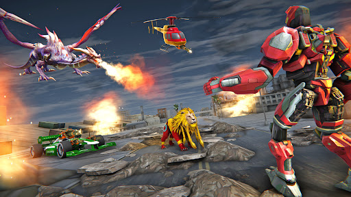 Enjoy this robot transformers fight gameplay with multiple stunts car formula race tracks. In this robot lion attack on foe in dragon city free you have to brings some unique electric robot. Lion robot run very fast to kill robot aliens. Flying dragon robot have amazing supreme transform ability into lion, dragon, drone and racing car formula robot. Warriors of robot looking towards you to rescue the city people from robotic helicopter games in flying dragon robots transform.