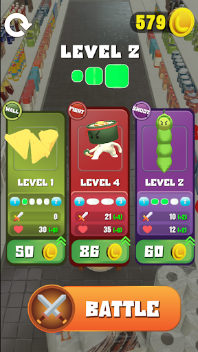 Draw & Upgrade to defeat the hungry enemy armies to save the food and escape the shop!