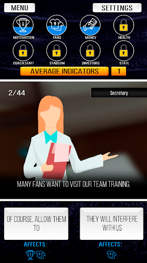 You will find yourself inside a full-fledged football club, you will make decisions and lead your team to victory. After you have mastered the position of a coach, the positions of the sports director and the president of the club await you. Use logic and balance!