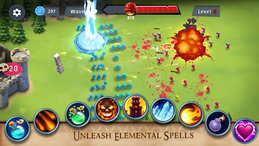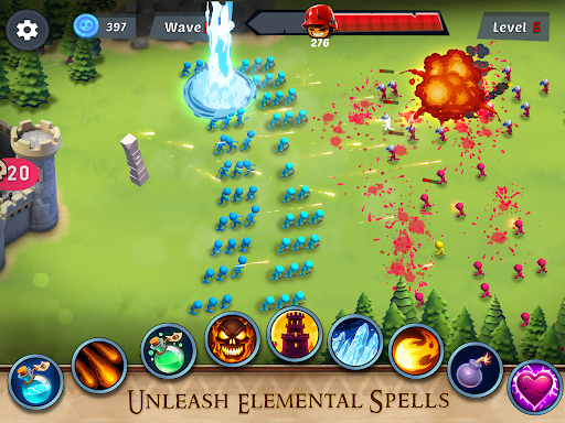 Discover a variety of magic abilities that can help you conquer your enemies’ waves. You can try out the healing ability to revive your troops, the fireball that can be directed to kill or weaken a group of enemies, the icebergs that appear in the middle of the battlefield, the mines you can set to kill enemies when they step on them, and other exciting abilities. ๐Ÿช„๐Ÿ’ฅโ„๏ธ๐ŸŒ‹๐Ÿ’ฃ