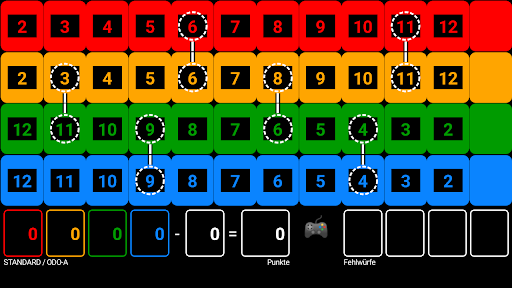 The Odo extension. With it, chained number fields come into play. It is available as an InApp purchase and adds five more variants (A-E) to each game sheet. This gives a total of 48 different game sheet variations. Play your unlocked game sheets normally or with the Odo extension. Just as you like. You can read the rules in the app.