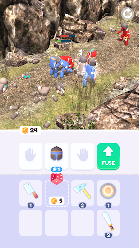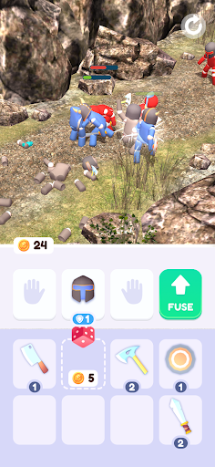 Collect coins, buy parts for coins, merge it to make more stronger details and build new fighters to win on the battlefield.