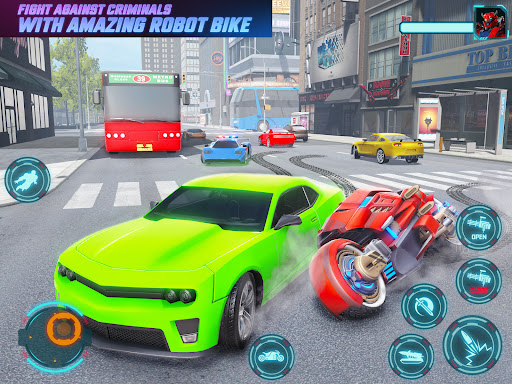 – Exciting Controls of Monster Hero Robot into Bike for Chasing Down City Gangsters