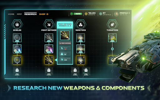Itβs not easy to produce effective anti matter weapons or intergalactic machine guns for your spacecraft. Research for new technology to get new types of anti matter weapons or intergalactic machine guns.