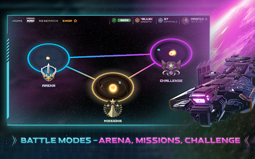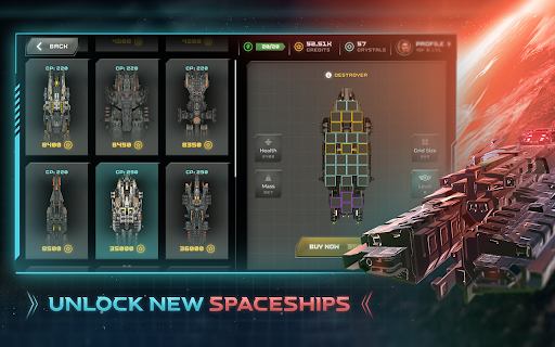 Collect as many coins as you win battles. Purchase unique spacecrafts such as the cruise starships or the fearsome dreadnoughts or flexible corvettes. Are you ready to join us in our space odyssey with your fearsome armada?