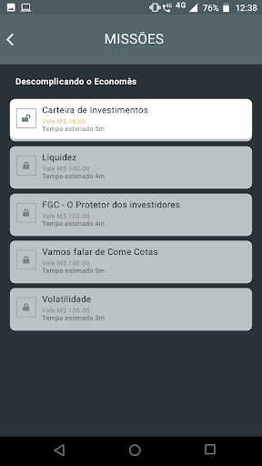Aprenda sobre investimentos brincando. Teste sua experiência no mundo financeiro através de missões de conhecimento, ganhando moedas e aplicando-as de acordo com a sua decisão de investimento. Aproveite para divertir-se bastante, tirar suas dúvidas e aprofundar-se no conteúdo simples e de fácil compreensão sobre mercado financeiro.
