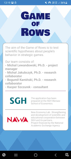 Try yourself by playing Game of Rows! Your opponents will be real people who – like you – decided to try out Game of Rows. You will be asked to choose one of several actions available to you. Your score in a given game will depend both on the choice made by you and by your opponent who – like you – was asked to choose one of several actions available to her/him.